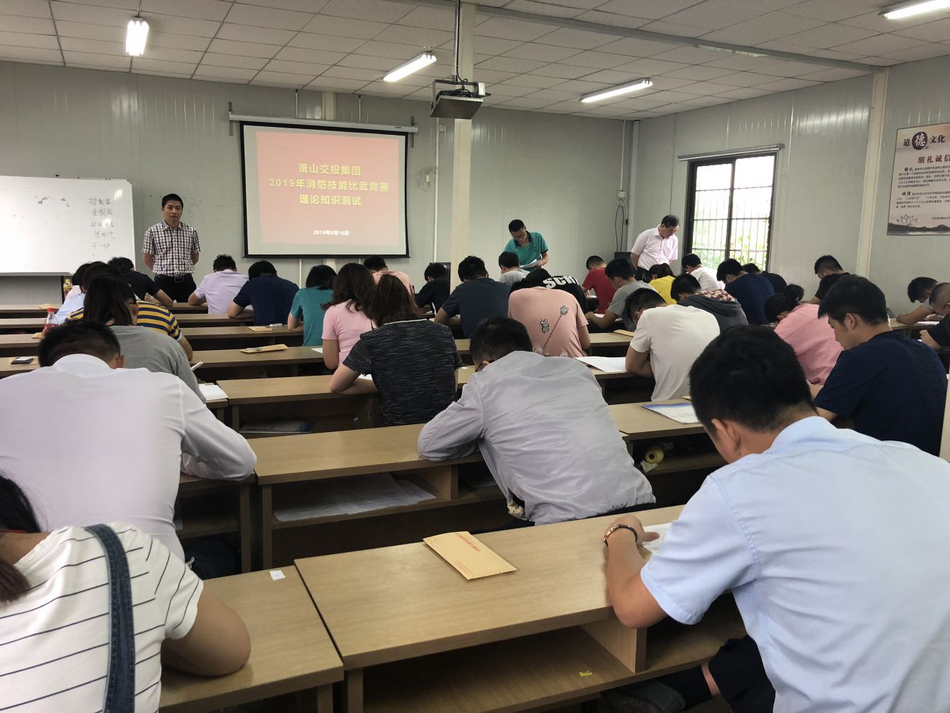 6月18日下午,職工消防技能比武競賽理論知識測試在公交公司城南公交停車場培訓中心教室舉行。集團公司及所屬各單位44名參賽隊員參加了理論測試。