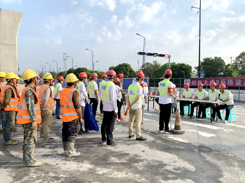 6月24日下午,時(shí)代大道改建工程組織開(kāi)展高空墜落應(yīng)急演練活動(dòng),項(xiàng)目部全體人員及各施工班組參加。