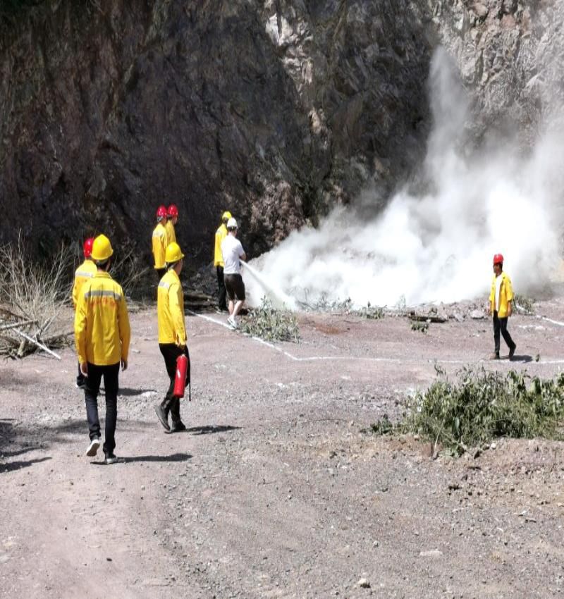當日下午2點30分,在得到河上鎮人民政府的許可下,由項目演習總指揮李鐵振下達開始指令,現場人員在預設點進行點火,現場施工人員及時發現火情,當即報告班組負責人,班組負責人立即通知項目部管理人員并啟動森林防火應急預案。參演人員隨后攜帶滅火器具立即進場滅火,先投擲滅火彈對火情進行控制,隨后使用干粉滅火器對火源進行進一步處理,最后成功撲滅火勢。在確保火焰不會復燃的前提條件下,工作人員撤出現場,由現場機械對演習現場進行清理,同時工作人員對參演人員、器具及周邊環境進行再一次復查,確認無誤后,演習完畢。