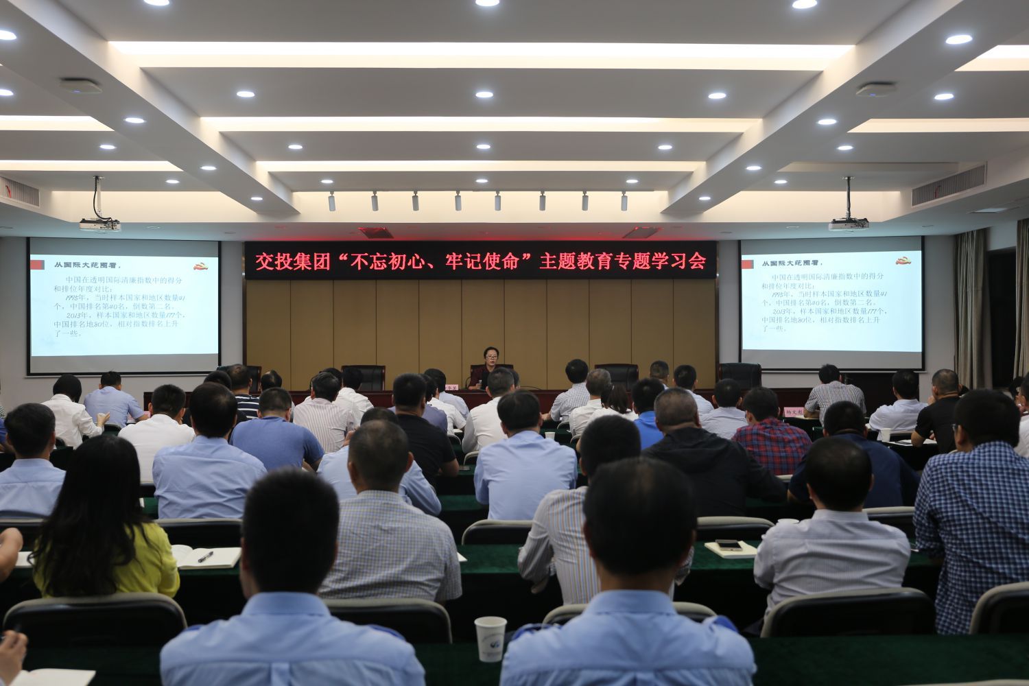 10月14日晚,集團(tuán)開展“不忘初心、牢記使命”主題教育專題學(xué)習(xí)會。集團(tuán)領(lǐng)導(dǎo)班子成員,集團(tuán)中層副職及以上人員,集團(tuán)所屬各單位基層黨支部書記,集團(tuán)公司行政黨支部全體黨員、預(yù)備黨員參加。