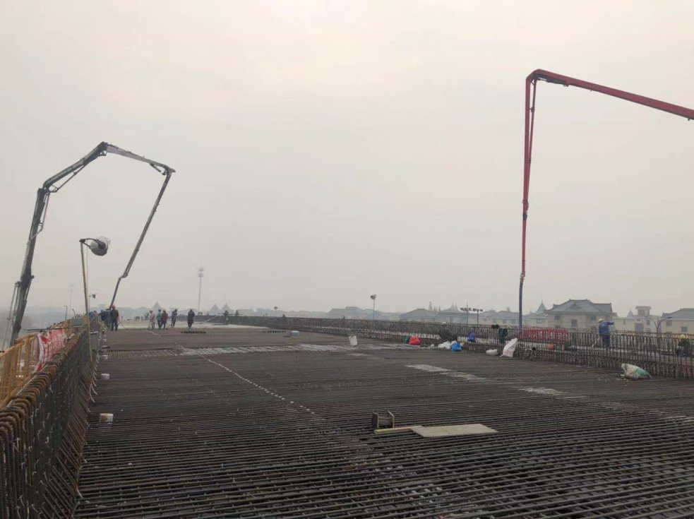 2019年12月17日,經(jīng)過(guò)兩天的奮戰(zhàn),紅十五線改建工程2標(biāo)段南陽(yáng)互通橋現(xiàn)澆箱梁頂板混凝土順利完成澆筑。