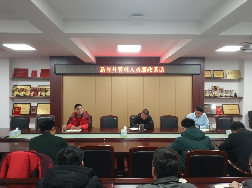 根據交通建管公司黨支部工作計劃安排,并結合公司年度廉政建設要求,確定召開新晉升管理人員廉政談話,會議于12月24日下午在公司201會議室舉行。由公司黨支部書記楊涌、常務副總徐全民列席、副總龔鐵峰主持,共參會晉升管理人員14名。