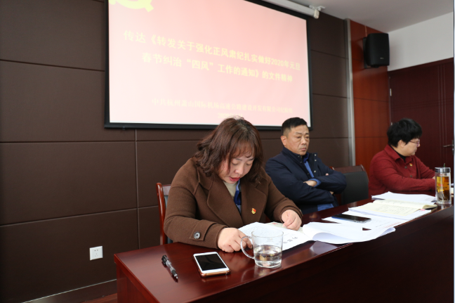 會上,公司紀檢組組長陳潛洋向與會人員傳達了《轉發關于強化正風肅紀扎實做好2020年元旦春節糾治“四風”工作的通知》的文件精神,并就公司節日期間強化正風肅紀、扎實糾治“四風”提出明確要求:一是要及時將文件精神傳達到各部門,黨員干部要提高政治站位,壓緊壓實責任,要緊密結合“不忘初心、牢記使命”主題教育,增進“不想”的自覺自律;二是對照要求進行“體檢”,鞏固深化專項整治成果,持續用力糾“四風”、樹新風,大力弘揚公私分明、親清分開、為民務實、尚儉戒奢等新風正氣,樹立正確導向;三是加強自身修養和紀律、自律意識,強化政治自覺、思想自覺和行動自覺,對照自我自查自糾,使節前教育入腦入心,不流于形式。