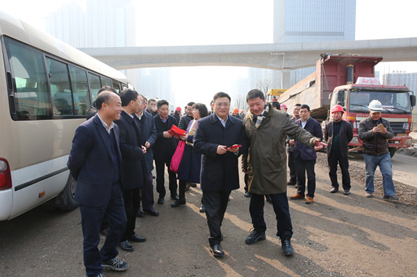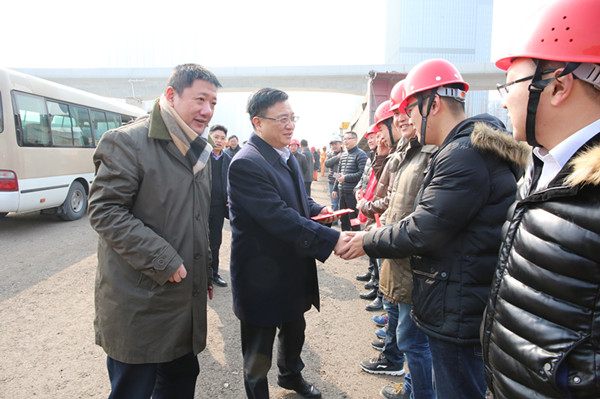 2月6日上午,副市長項(xiàng)永丹赴機(jī)場公路改建工程市心路互通地面道路施工現(xiàn)場對工程建設(shè)者進(jìn)行慰問。市交通運(yùn)輸局副局長華歷,副區(qū)長洪關(guān)良,區(qū)交通運(yùn)輸局局長姜紀(jì)呈,集團(tuán)董事長、總經(jīng)理方軍,副總經(jīng)理金文華陪同。