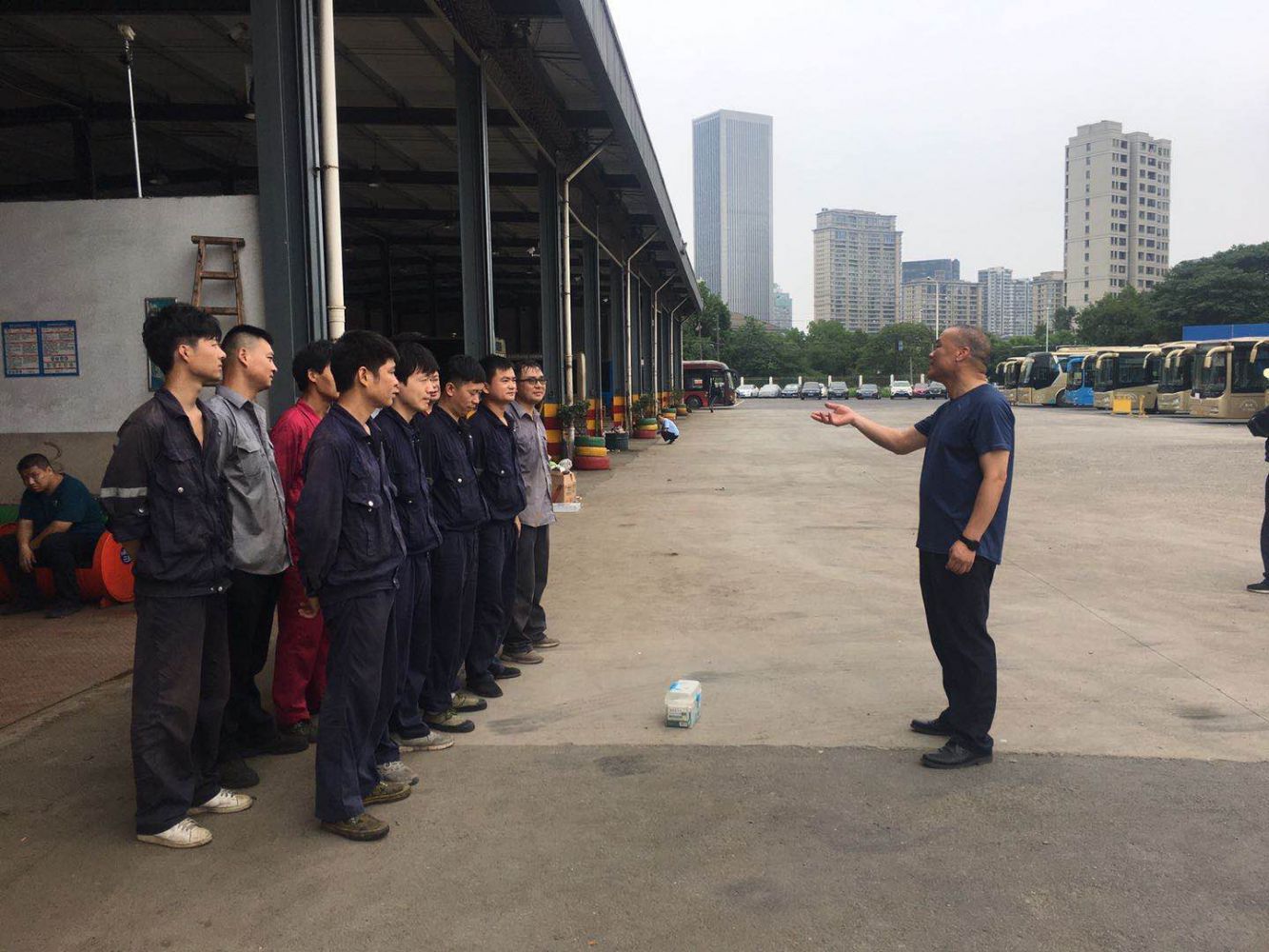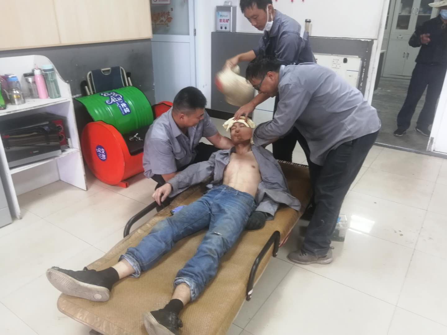 按照演練流程和角色分工,模擬旅客突然中暑暈倒進行應急處置演練。演練中,一名修理工在在高溫環境下車輛維修作業過程中,出現頭暈現象,并隨后暈倒在地。同事發現險情后,立即通知班組長,隨后分公司負責人接到班組長事故報告后,立即啟動應急預案,開展施救工作。現場職工合力將中暑員工抬至陰涼通風處,救護組攜帶急救藥箱趕至演習現場,判斷病情后采用簡單應急處置方法,用冷毛巾為中暑人員擦拭身體,解開病員上衣通風透氣,用清涼藥品涂抹傷員人中,并給予適量清涼含鹽飲料,使病員快速降溫、補水、醒腦,最后,中暑人員緩慢蘇醒。