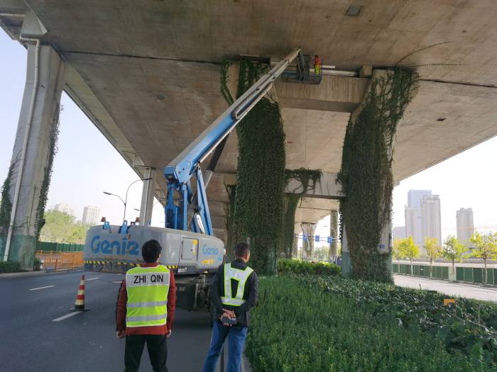 本次施工作業全程避開交通高峰時段,降低對過往車輛的影響。作業人員嚴格遵循“預防為主、防治結合”的原則,采用登高車對橋梁的伸縮縫集水槽進行施工檢查,確保橋梁正常運營狀態。卜總在此次檢查中提出兩點要求:一是要現場施工方必須做好保險帶、安全帽,切實做好施工現場安全管理工作;二是要做到相互理解、相互支持、相互配合,共同創建優質工程。