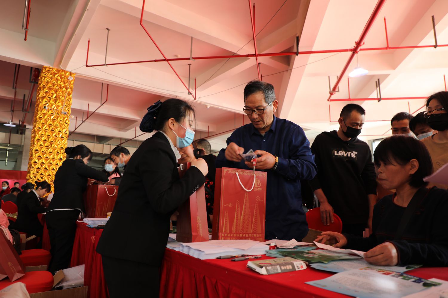 交房現場人頭攢動,在工作人員的細心引導下,按照交房流程的先后順序,經過信息核對、出具收據、簽訂協議、繳納費用、資料登記等流程后,村民便可順利拿到新房鑰匙。現場還有物業、供電、供水、電信等一站式服務,每個環節都有條不紊、服務周到,確保每一個安置戶都能高高興興喜提新房。