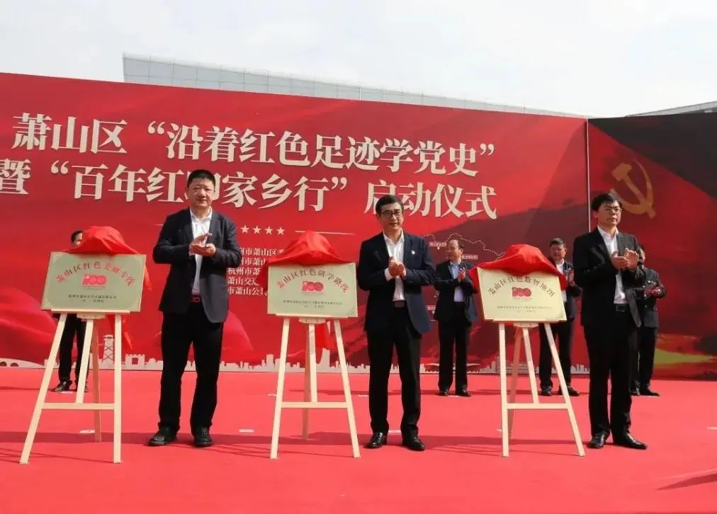 蕭山區(qū)委常委、組織部部長陸志敏,區(qū)委常委、宣傳部部長周勝華,副區(qū)長方軍分別為紅色研學(xué)路線、紅色數(shù)智地圖、紅色美麗專線揭牌。