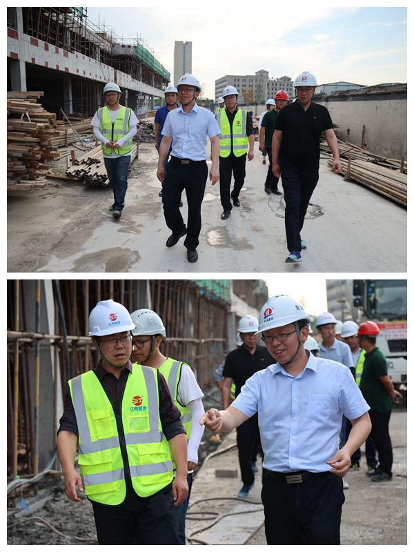 會后,由孔樂帶隊,一行人進入施工現(xiàn)場進行實地查看,并參考“建筑工地標準化三十條”,指出現(xiàn)場可能存在的安全隱患,并對可以進一步改進的地方提出意見和建議。