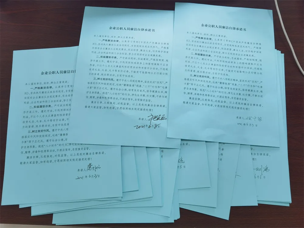 簽訂《國有企業公職人員廉潔自律承諾書》,細讀《國企蛀蟲覆滅記--國有企業公職人員違紀違法案例剖析》,引導黨員干部以案為鑒、防微杜漸、警鐘長鳴。