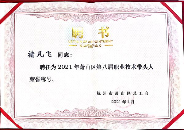 近日,由蕭山區(qū)總工會組織的“第八屆職業(yè)技術(shù)帶頭人”評選工作已經(jīng)順利結(jié)束,由長運公司選送的褚凡飛同志在激烈的角逐中脫穎而出,榮獲2021年度“職業(yè)技能帶頭人”榮譽稱號。