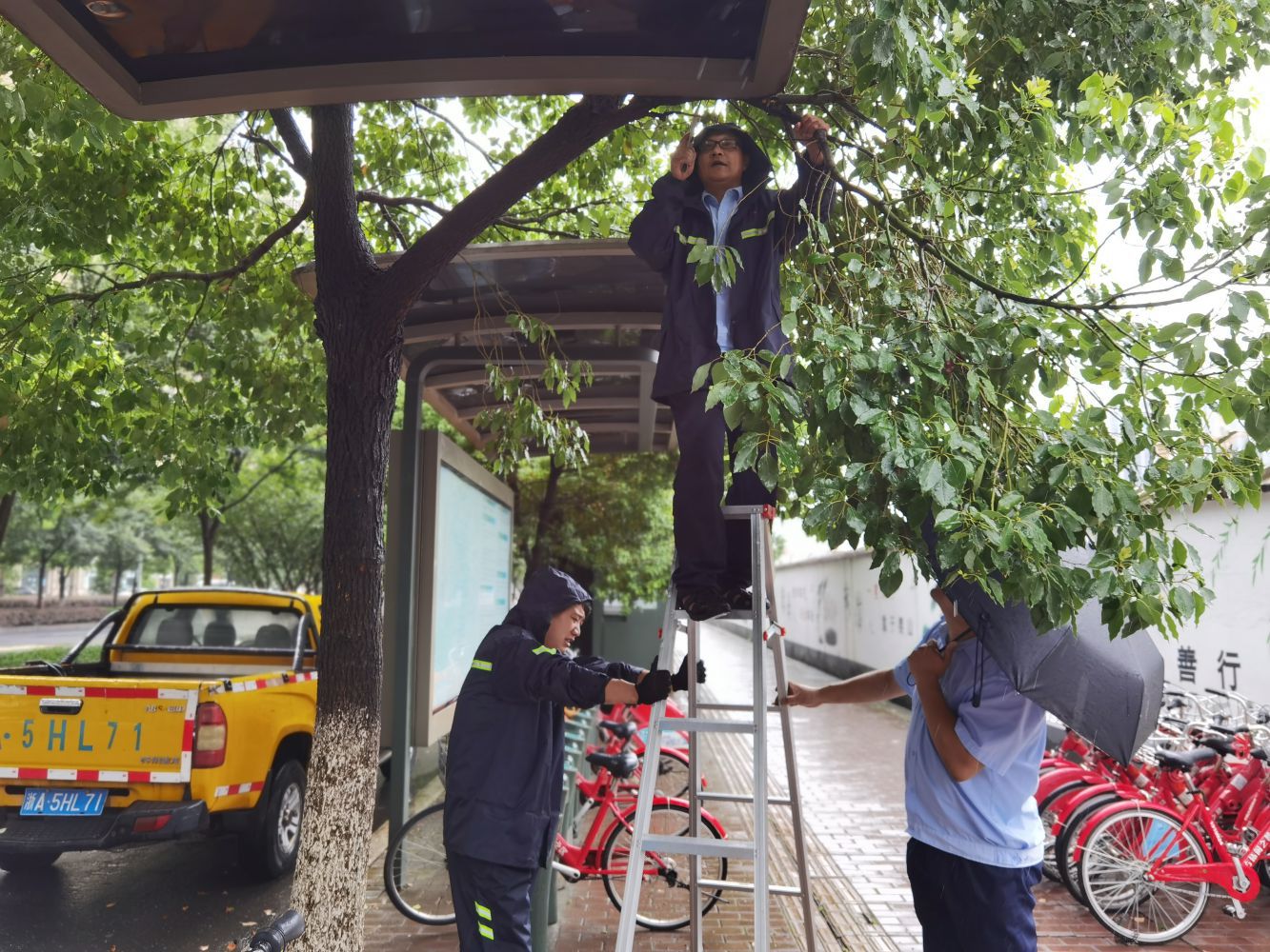 四是公共自行車管理部全體管理人員及值守人員對各服務點開展巡查,對存在安全隱患的樹枝進行修剪,對亭棚、設備的性能及用電安全進行巡檢,保障服務點安全;