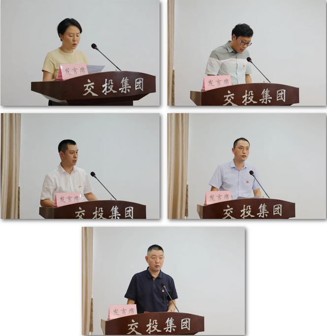 黨群工作部、總師室、浦陽(yáng)江開(kāi)發(fā)公司、集團(tuán)行政支部、交投能源聯(lián)合支部負(fù)責(zé)人表態(tài)發(fā)言