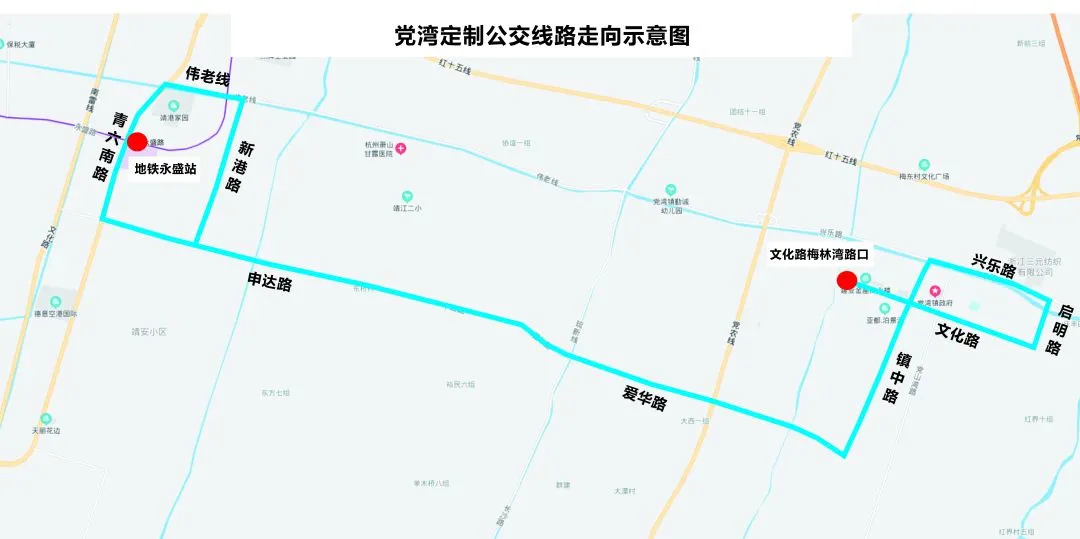 文化路鎮中路口、黨灣鎮政府、黨灣一小、偉東橋、鎮中路文化路口南(新設)、鎮中村、幸福村、幸福村西、大西村、裕民村、地鐵永盛路站、裕民村、大西村、幸福村西、幸福村、鎮中村、鎮中路文化路口南(新設)、偉東橋、黨灣一小、黨灣鎮政府、文化路鎮中路口21只停靠站點及首末站文化路梅林灣路口。