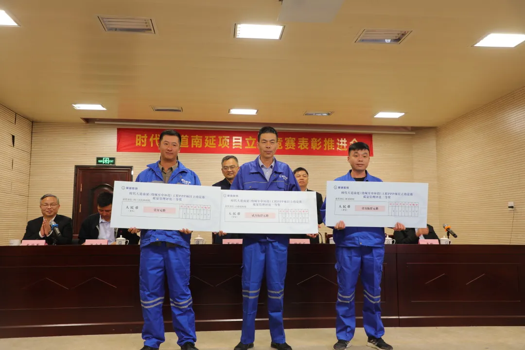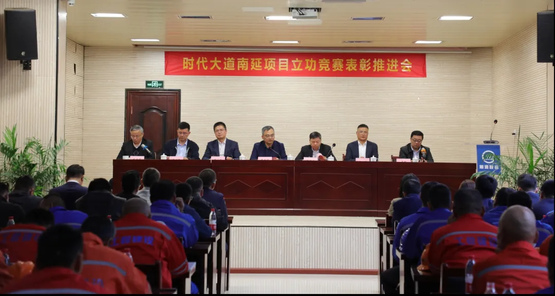 10月21日,集團黨委書記、董事長夏柏林,黨委委員、副總經理金文華應邀出席時代大道南延項目立功競賽表彰推進會。會上,夏柏林代表集團對受到表彰的單位、工區和優秀個人表示祝賀,也對全體一線建設者們表示問候,并對后續項目建設工作提出希望:要提站位,切實明白時代南延的建設既是業務工作、更是政治任務;要重品質,切實明白項目建設既是速度比拼、更是質量比拼;要講協作,切實明白項目建設既要單兵作戰、更要聯手破難。