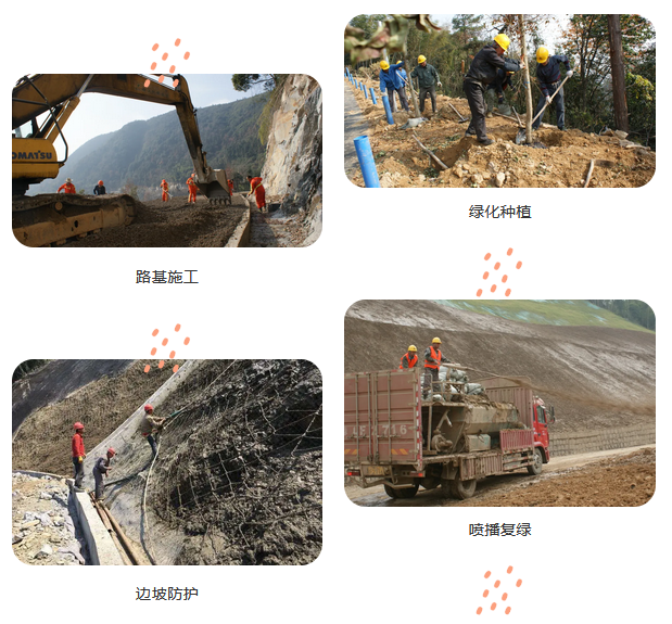為最大程度減少對山林資源的破壞,采用山體邊坡防護(hù)、噴播覆綠等手段對山體進(jìn)行生態(tài)修復(fù),運行建成后的林道已基本恢復(fù)原生態(tài)。