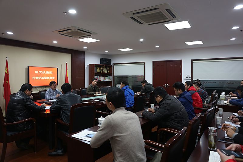 1月22日下午,集團召開了“抗雪防凍”緊急會議。集團黨委副書記,副總經理虞國燦、副總經理王齊天,企管部全體人員,所屬各單位安全分管領導和安全職能部門負責人參加了本次會議。會上,虞國燦傳達了省、市、區各級黨委政府關于應對寒潮工作的緊急電視、電話會議精神,并結合當前實際提出具體工作要求:一是思想上要重視,責任上要擔當;二是確保不死人、不傷人、損失降到最低的目標;三是做到全員參與;四是做好宣傳引導;五是組建應急搶險分隊。最后王齊天對所屬單位抗雪防凍工作提出四點要求:一是值班人員繼續明確;2是應急隊伍準備待命;三是隱患點做好排查;四是發現問題及時向集團匯報。