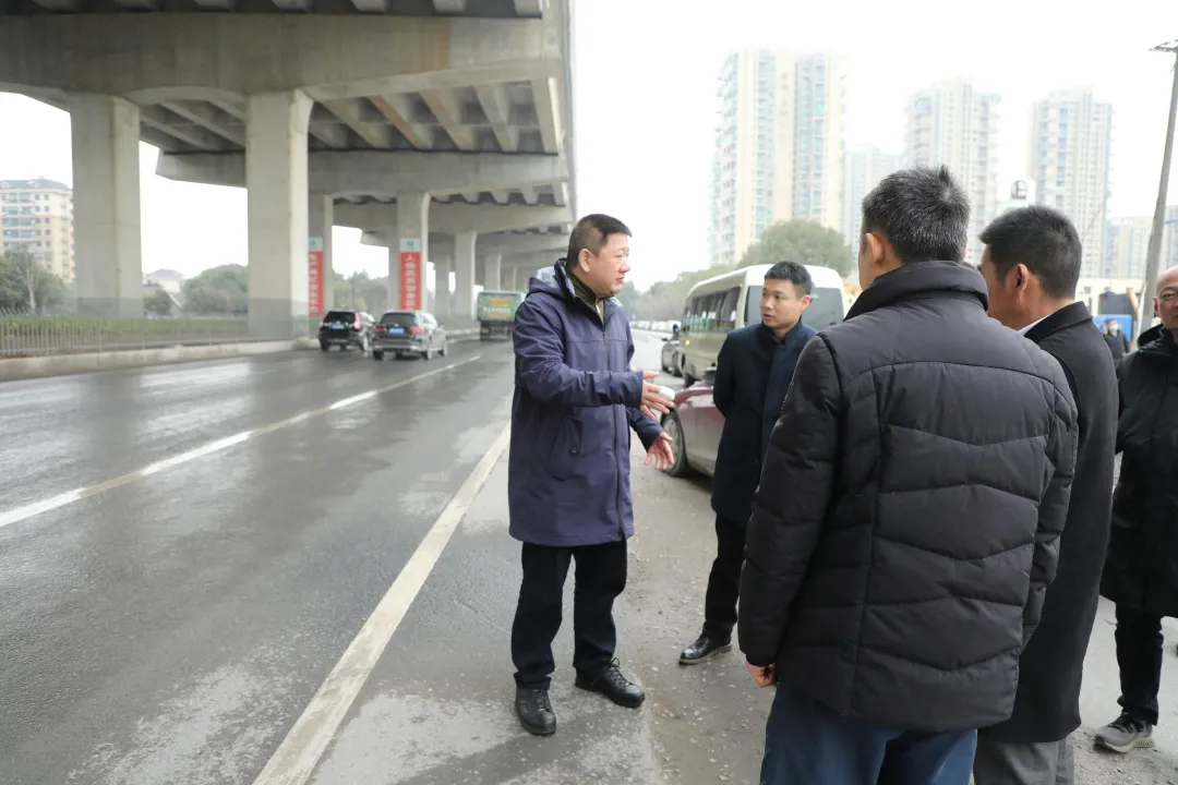 1月7日,副區長方軍檢查時代大道改建、03省道東復線高架南延工程地面道路建設進展情況。區各有關部門、鎮街、單位負責人,集團黨委書記、董事長夏柏林,黨委委員、副總經理金文華參加。