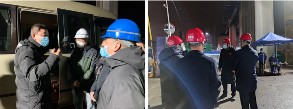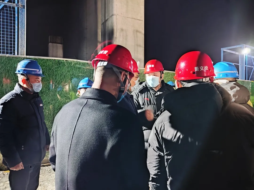 2月9日晚,副區(qū)長方軍帶隊(duì)檢查時(shí)代大道南延(繞城至中環(huán)段)工程夜間施工情況。集團(tuán)黨委書記、董事長夏柏林,黨委副書記、總經(jīng)理徐寧軍,黨委委員、副總經(jīng)理金文華參加。