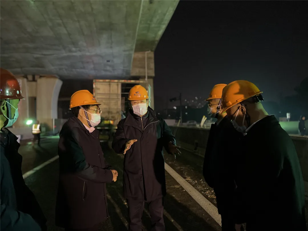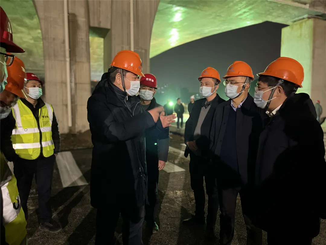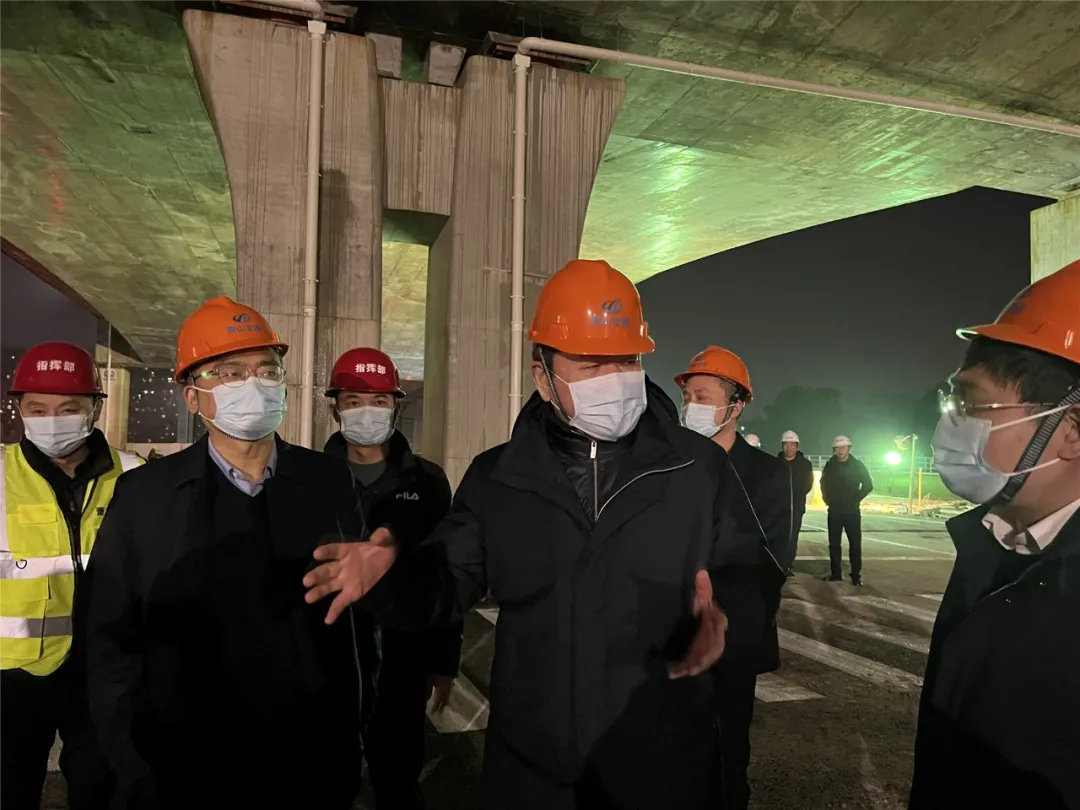 2月14日晚,副區(qū)長方軍一行前往03省道東復線高架南延工程現(xiàn)場檢查地面道路施工情況。集團黨委書記、董事長夏柏林,黨委副書記、總經(jīng)理徐寧軍,黨委委員、副總經(jīng)理金文華,各參建單位負責人參加。