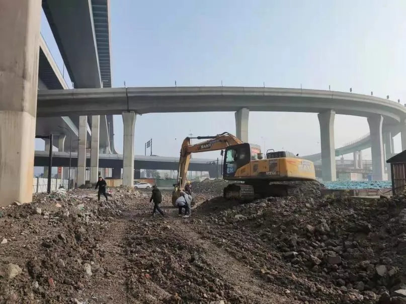 彩虹互通花木城東區(qū)臨時保通道路破除