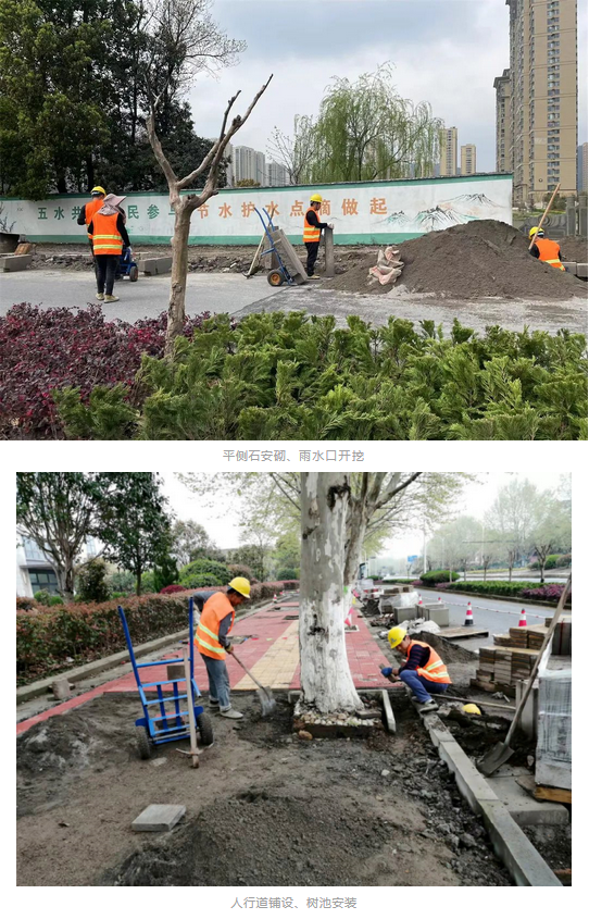 平側石拆除已全部完成;人行道拆除15590平方米,占總量的81%;人行道鋪設7800平方米,占總量的40.5%;雨水口新增85座,占總量的94%。