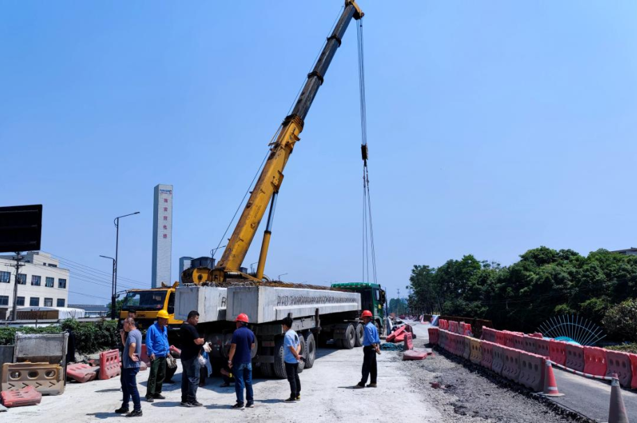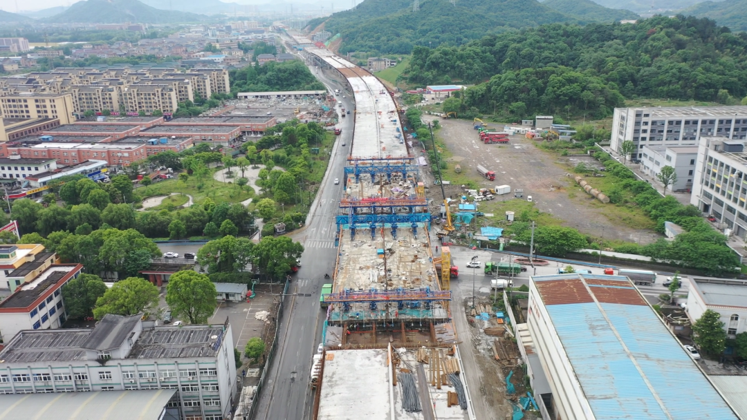 主體工程完成75%,高架橋下部結(jié)構(gòu)完成90.4%、上部結(jié)構(gòu)完成64.3%、地面道路完成51.8%。承臺完成95.8%,立柱完成92.5%,蓋梁完成87.2%,梁板預(yù)制92.1%、梁板架設(shè)67.4%,鋼箱梁安裝64%。目前全線樁基已全部完成,漁浦街現(xiàn)澆箱梁已完成,漁浦大橋已完成翻交,徐童路現(xiàn)澆箱梁已完成。