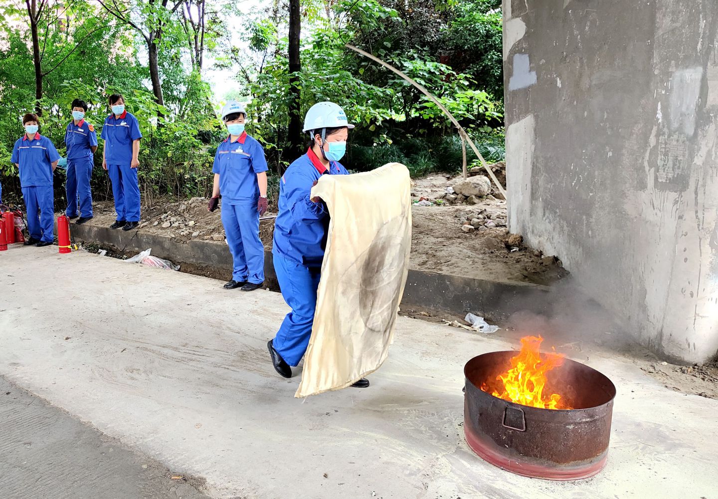 現場,消防宣傳員首先對專業理論知識進行講解,內容包括火災基本常識、滅火器正確操作方法等。與此同時,宣傳員現場指導員工進行滅火器材的規范使用和操作。隨后,全體參訓人員正式進入實操實訓環節,通過仿真模擬演練切實增強安全防火意識及火災處理操作技能,并提升處理突發事件的協調配合能力。
