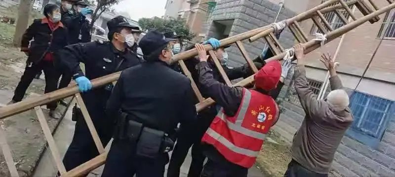 物業(yè)保安員施杏榮和陳校慶聽到消息后,第一時(shí)間趕到了現(xiàn)場,兩人在輪換嘗試多次后,也未能將門打開。9:43警察同志趕到現(xiàn)場,在一番確認(rèn)后,警察同志一時(shí)間也束手無策,只能尋找開鎖師傅進(jìn)行開鎖,但現(xiàn)場情況十分緊急,等開鎖師傅到來,可能事故已經(jīng)發(fā)生。在短暫商討過后,物業(yè)工作人員迅速跑去抬登梯,取得登梯后綠化師傅孫建松迅速爬上防盜窗,在業(yè)主、警察同志和物業(yè)工作人員的齊心協(xié)力下成功化解了此次危機(jī)。