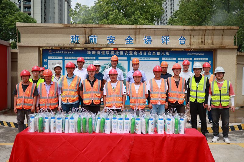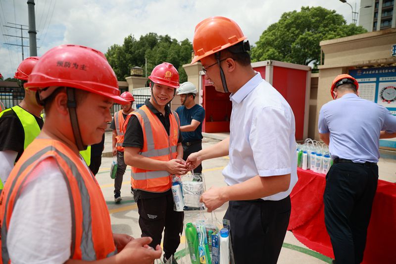 7月26日上午,蕭山地鐵投資公司開展“盛夏送清涼”活動,由集團副總經(jīng)理、公司總經(jīng)理鐘波帶隊的慰問組一行至雙橋安置房項目工地,慰問烈日下的一線工人。集團資產(chǎn)運行部經(jīng)理趙軍、公司副總經(jīng)理蔣志良參加慰問。