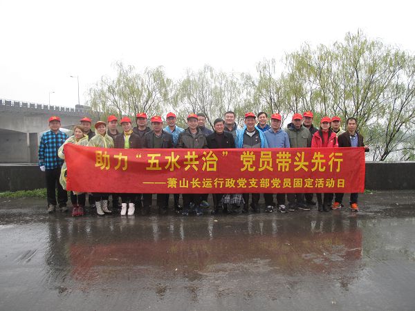 3月19日下午,蕭山長運公司行政黨支部聯合開展主題為“助力五水共治,黨員帶頭先行”的黨員固定日活動,向來往市民和站內旅客分發五水共治宣傳單,喚起環保意識,宣傳五水共治。隨后,20余名黨員帶上火鉗、垃圾袋等工具前往浦陽江邊清理河道兩旁垃圾。當天雖然大雨滂沱,但黨員們的熱情絲毫不減。