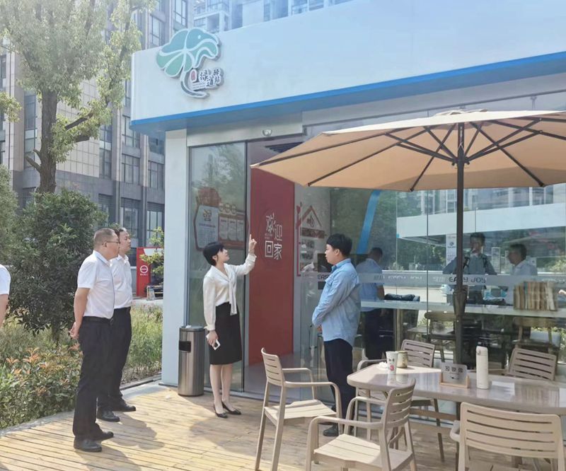 隨后,考察團(tuán)一行來(lái)到蕭山城廂東岳廟充電站,中石化蕭山分公司黨支部書(shū)記虞一鳴為大家進(jìn)行講解。該站點(diǎn)充分利用城廂油庫(kù)閑置地塊,引進(jìn)充電樁、換電站、汽服業(yè)務(wù)、餐飲業(yè)務(wù)等項(xiàng)目,司乘人員可在此完成車輛充換電,也可以為愛(ài)車進(jìn)行汽服保養(yǎng),等待期間可以來(lái)到易捷休息區(qū)用餐或者喝杯咖啡小憩,為顧客提供的一站式服務(wù),成為新能源車主加能首選地。