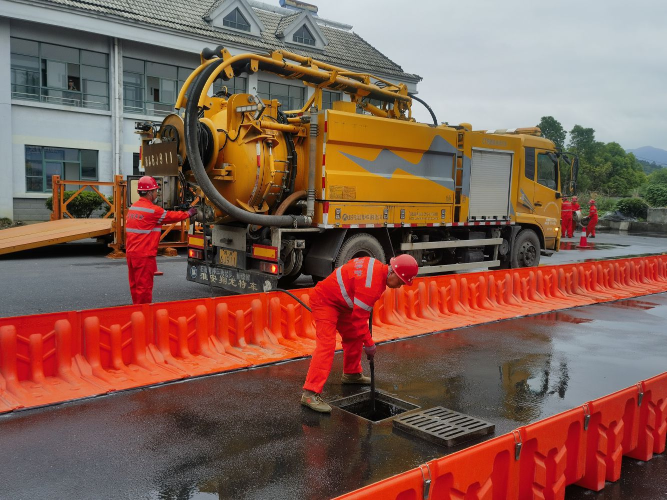 緊接著,防汛防洪應(yīng)急演練拉開帷幕。演練模擬因連續(xù)暴雨,水流沖擊導(dǎo)致235國(guó)道735K+300出現(xiàn)大面積積水的災(zāi)害險(xiǎn)情。演練內(nèi)容包括預(yù)案啟動(dòng)、指揮調(diào)度、道路清障、現(xiàn)場(chǎng)維護(hù)和排水疏通搶險(xiǎn)。示警錐放置、防洪板圍擋,各參演人員各司其職、密切配合;應(yīng)急排水車、吸污疏通車等各類搶險(xiǎn)車輛迅速集結(jié)、有條不紊。結(jié)束后撤除路面維護(hù),恢復(fù)通行,最大限度地減輕水災(zāi)造成的損失。