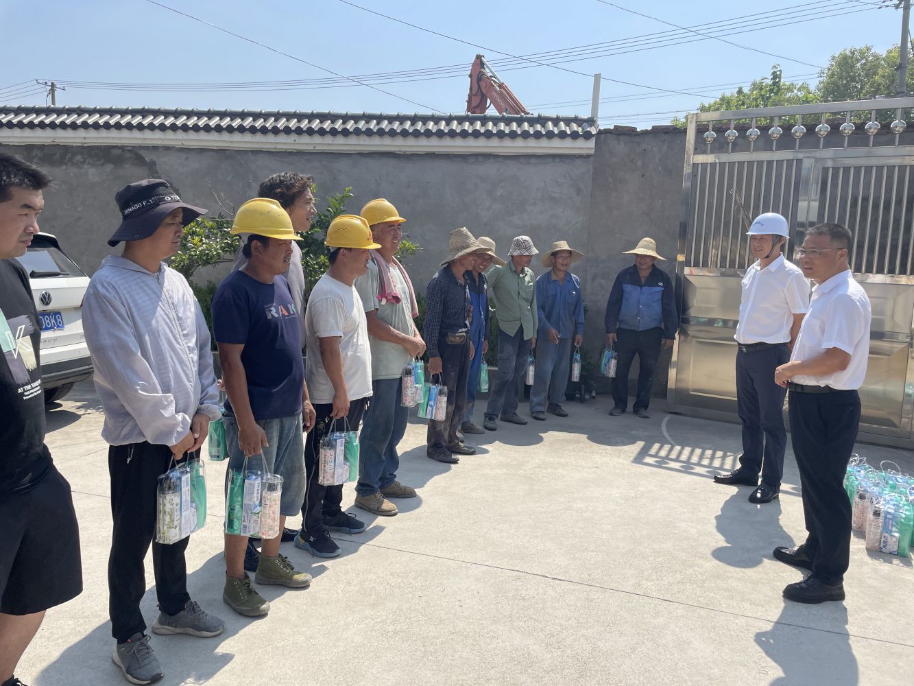 夏日炎炎,暑氣灼人,面對持續高溫天氣,公司重點項目建設一線施工人員頂烈日、冒酷暑,倒排工期,全力以赴跑出項目建設“加速度”,為關心關愛高溫下作業的一線工人,8月5日上午,交通新鎮公司開展高溫慰問活動。