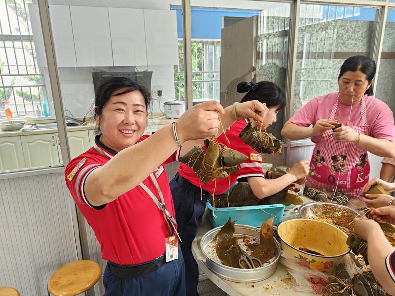 除了手工藝品,公司和站點還精心準備了新鮮豐富的食材,員工們利用休息時間聚在一起制作端午粽子,分享節日到來的喜悅,大家由衷感嘆自己包的粽子吃起來格外香糯。