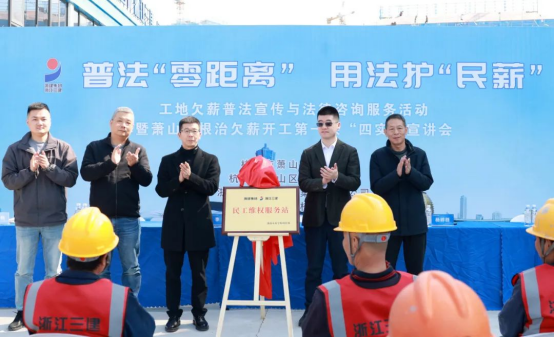 “普法先行,杜絕欠薪,讓農(nóng)民工勞有所得!”近日,普法“零距離”用法護(hù)“民薪”|工地欠薪普法宣傳與法律咨詢服務(wù)活動(dòng)在浦南未來學(xué)校項(xiàng)目部開展。臨浦鎮(zhèn)黨委委員、副鎮(zhèn)長徐瑋韜,蕭山區(qū)教育局、浙江省三建建設(shè)集團(tuán)、蕭山城區(qū)建設(shè)、鎮(zhèn)勞動(dòng)保障站相關(guān)負(fù)責(zé)人,項(xiàng)目建筑工人等參加。