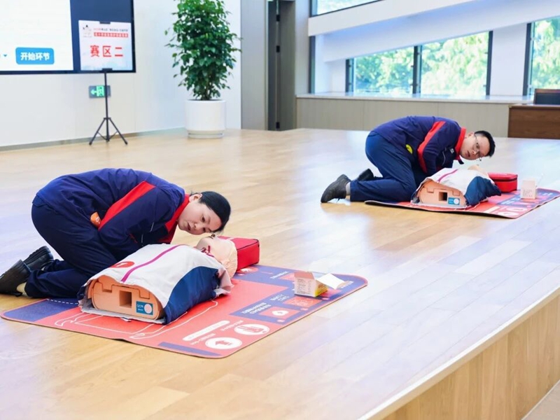 公司以集團消防疏散應急演練活動和紅十字應急救護技能競賽為契機,選派以加油站站長為主要成員組成的參賽隊參與其中。同時,模擬加油機起火等場景,開展全流程應急演練。重點訓練員工掌握“提、拔、握、壓”滅火器操作技巧和“捂鼻、低姿、速逃”火場逃生法則。通過模擬真實場景進行檢驗,確保員工熟練掌握初起火災撲救與協同疏散能力,累計演練覆蓋率達100%。