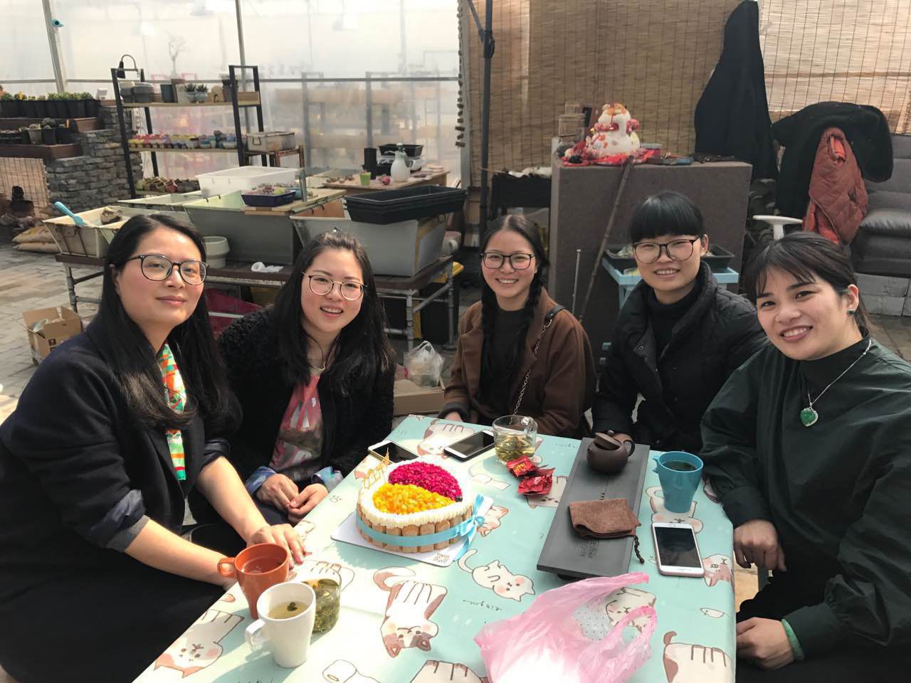 公司女職工在多肉植物園內(nèi)進(jìn)行了一場(chǎng)輕松愉快的茶話會(huì)。