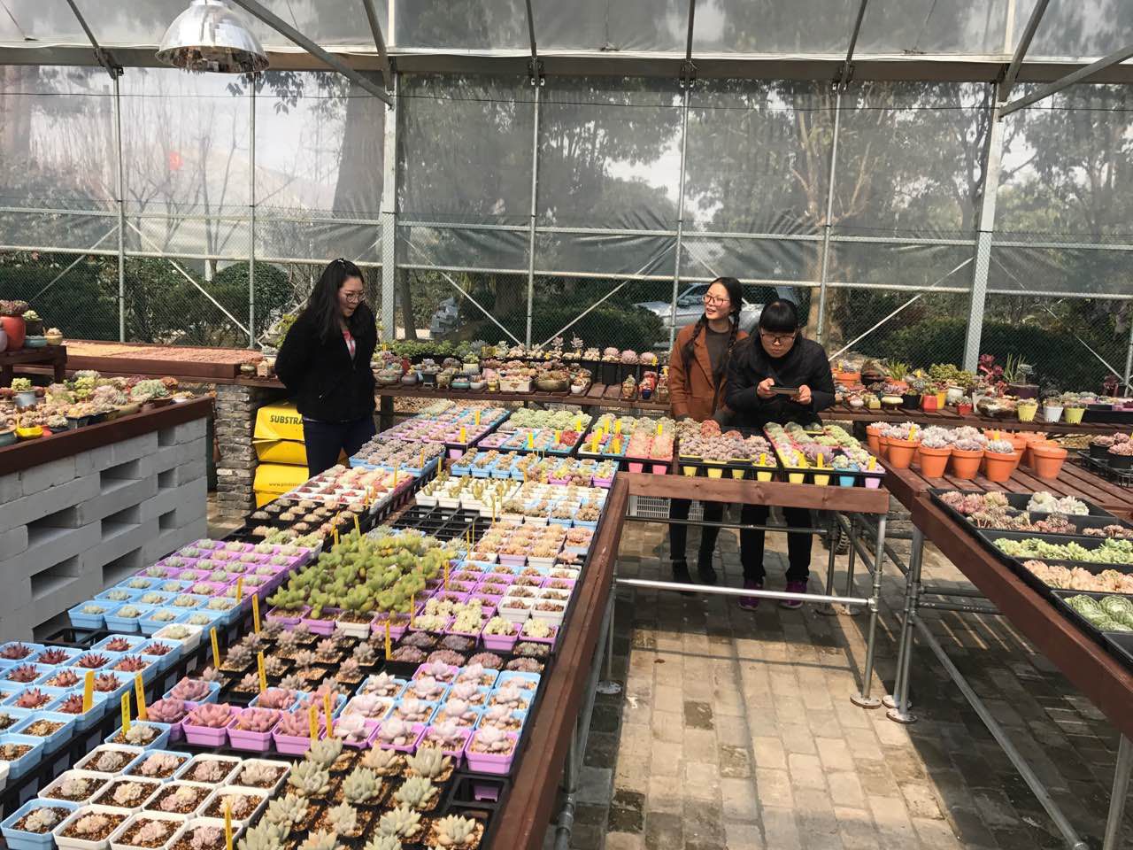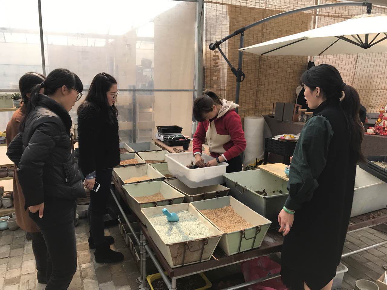 品種豐富、形態(tài)各異的多肉植物立刻贏得了女職工的喜愛(ài),紛紛拍照留念。