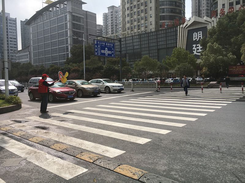 為積極響應集團 “禮讓斑馬線 文明出行”活動,3月21日至4月5日,交投出租車創優車隊成員前往金城路頤高數碼廣場“無燈控”斑馬前近開展勸導活動。該斑馬線附近人流和車流異常密集,交投出租車成員們忙著“左顧右看”,集中精力注意著準備橫穿斑馬線的行人和過往的車輛。
