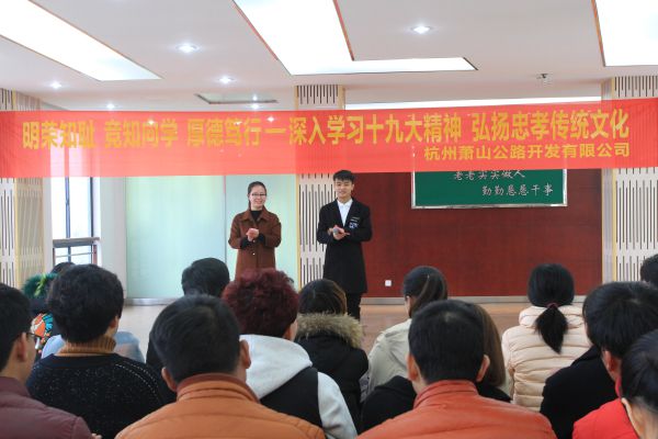 本次活動忠孝主題為“明榮知恥 競知向學 厚德篤行——深入學習十九大精神 弘揚忠孝傳統文化”。活動通過文明禮儀操展示、“獻禮十九大”詩朗誦、說說心里話、憲法知識競猜等環節,展現了員工踏實工作、愛崗敬業、忠誠企業、奉獻社會的精神面貌。
