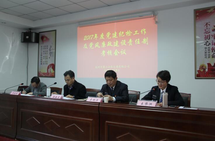 會上,公司黨委書記王黎洪匯報黨組織落實黨風廉政建設主體責任情況,紀委書記吳勇義匯報紀檢監察組織落實黨風廉政建設監督責任情況;吳根法總經理和王黎洪書記進行述職述廉;參會人員對班子成員進行民主測評,對干部隊伍建設及干部選拔任用工作進行民主評議。