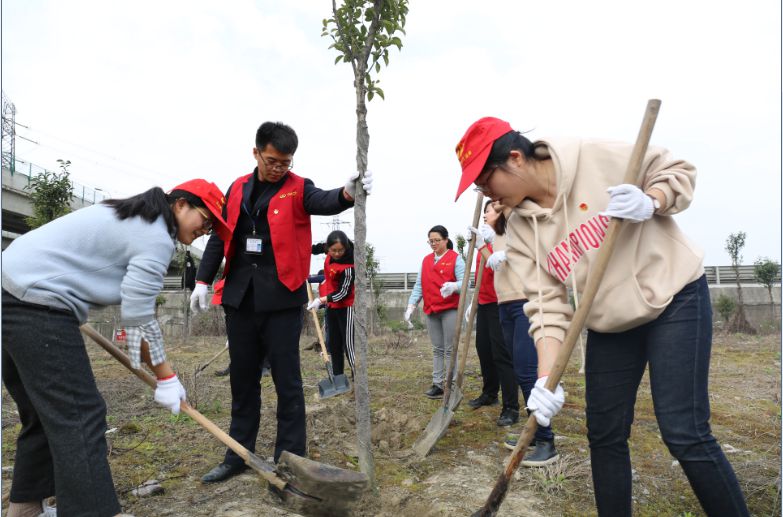 活動現場,志愿者們揮鍬鏟土、定點挖坑、放苗回填,分工協作。經過1個多小時的勞作,大家共栽下新樹苗20余棵。此次植樹活動,進一步提高了團員青年們的環保意識和社會責任感,積極踐行習近平總書記提出的“綠水青山就是金山銀山”的發展新理念,從而達到感恩自然,奉獻愛心的目的。在今后的工作和生活中,團員青年們將繼續發揮生力軍作用,不忘初心,牢記使命,為生態文明建設貢獻自己的青春力量。