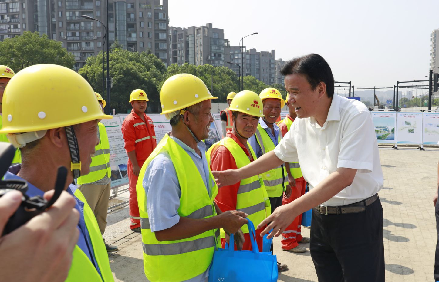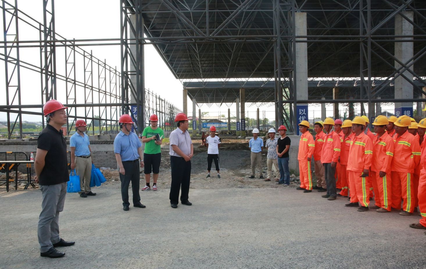 區(qū)政協(xié)主席洪松法、副區(qū)長吳煒煒一行到義橋作業(yè)區(qū)項(xiàng)目施工現(xiàn)場,對一線工人進(jìn)行了高溫慰問,發(fā)放了夏季防暑慰問品,并叮囑大家做好防暑降溫措施,牢記施工安全。集團(tuán)黨委副書記、副總經(jīng)理虞國燦,建管公司、浦陽江公司負(fù)責(zé)人參加慰問活動。