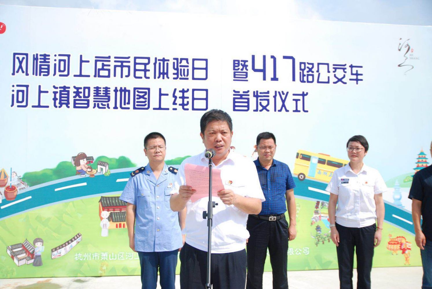 8月1日上午9時,河上公交站啟用暨417(M)新線開通儀式在河上公交站舉行。河上鎮長俞萬昌及河上鎮相關班子成員以及蕭山公交董事長、總經理吳根法,書記王黎洪等班子領導參加了開通儀式。