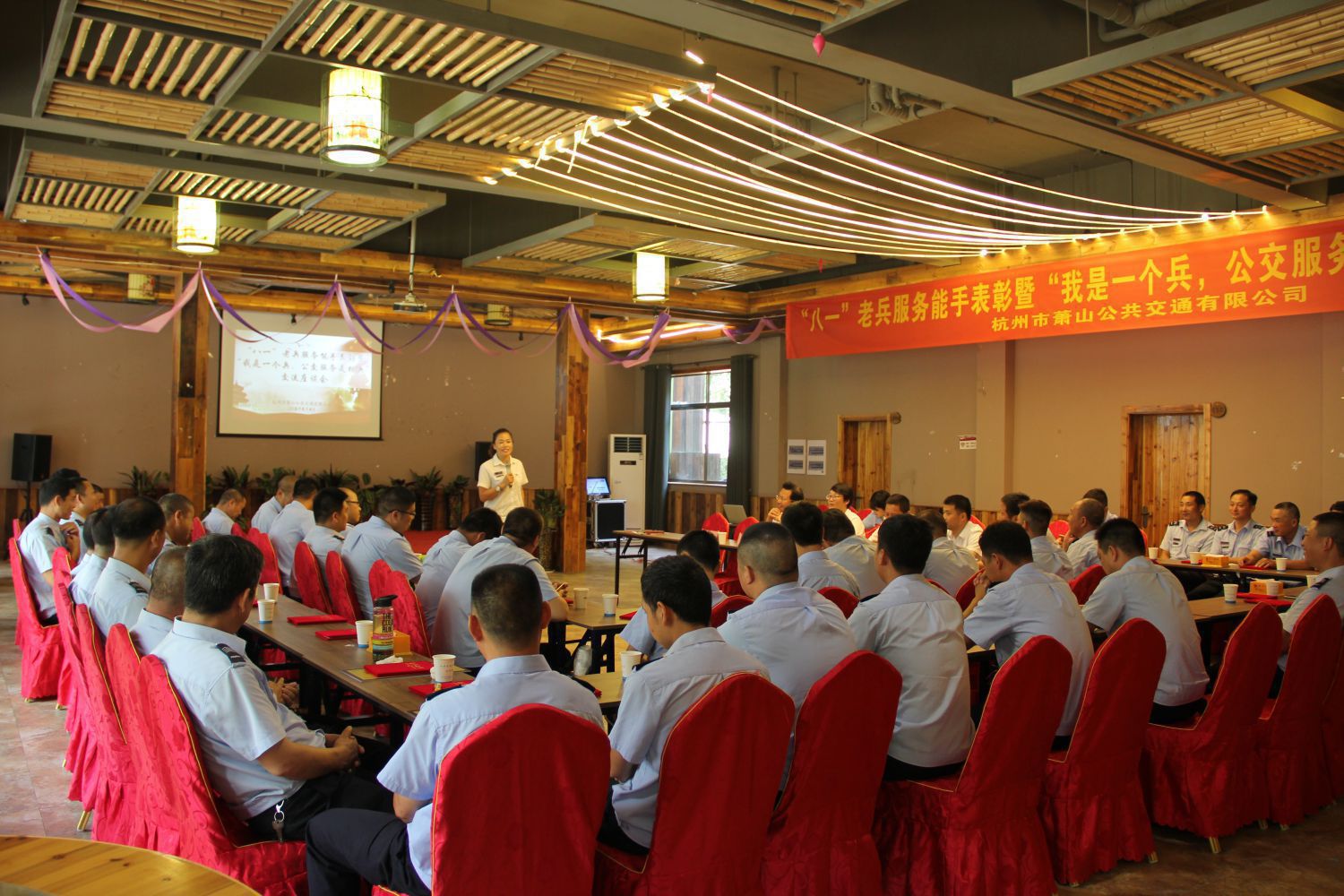 八一建軍節(jié)之際,為充分發(fā)揮公司退伍老兵內在優(yōu)勢和示范帶動作用,切實將退伍老兵凝聚到建設優(yōu)秀公交的戰(zhàn)斗中來,蕭山公交公司于8月4日上午召開“八一”老兵服務能手表彰暨“我是一個兵,公交服務是標兵”交流座談會議。公司班子領導、各分工會負責人、各車隊“老兵服務能手”、老兵服務示范崗人員等共計50余人參加活動。