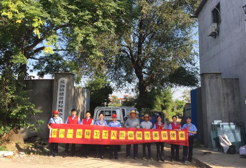 為感謝環衛工人的辛勤付出,9月28日上午,機場高速公司下屬新街(互通)收費站的志愿者們,來到瓜瀝鎮建盈村垃圾中轉站慰問一線環衛工人。