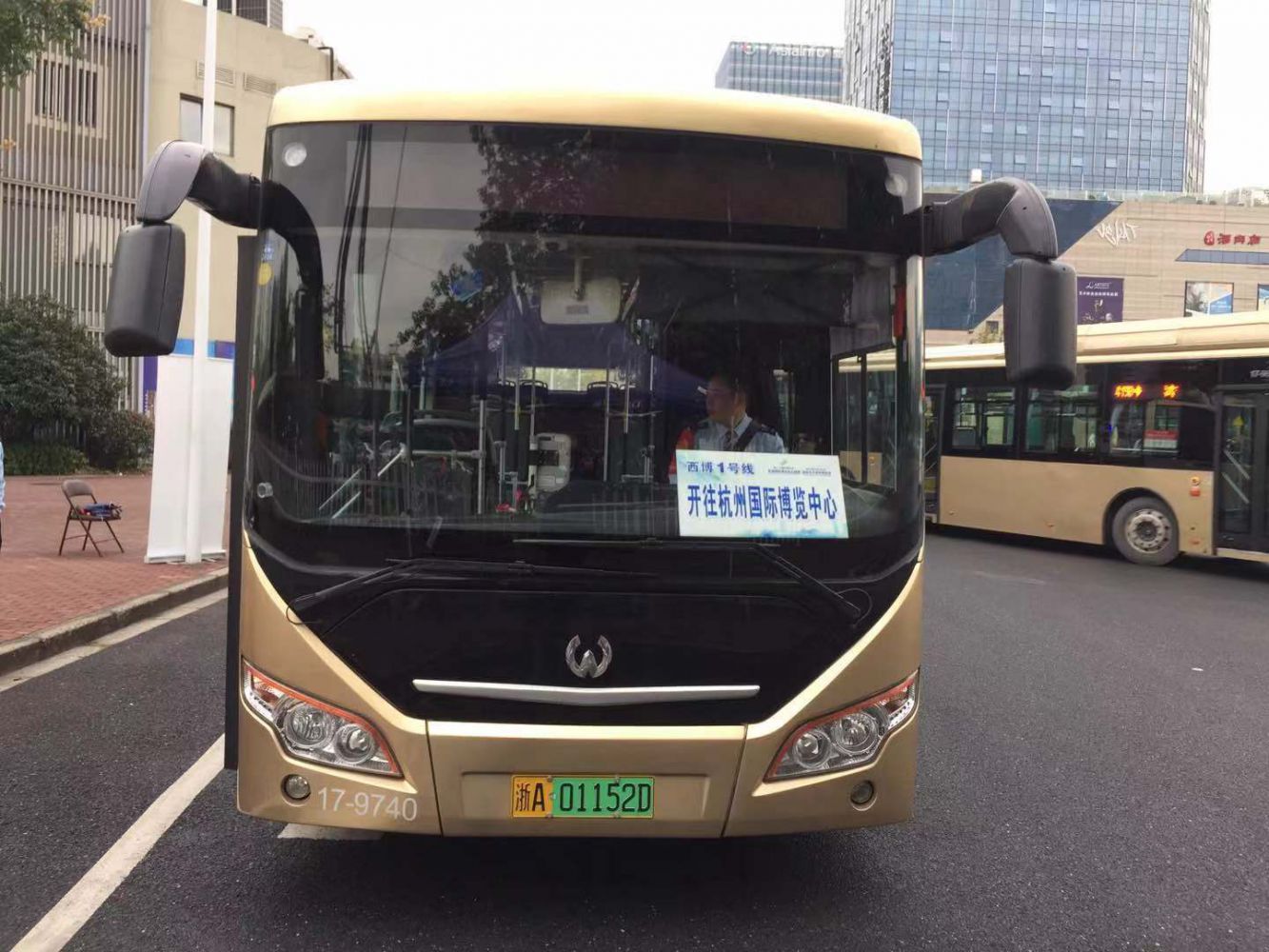 西博1號線由地鐵江陵路站至杭州國際博覽中心。線路長度為5.5公里,單程行駛時間15分;西博2號線由民和路平瀾路口至杭州國際博覽中心。線路長度為3.5公里,單程行駛時間15分;以上專線均為憑票免費乘坐。與此同時,公司還加強了周邊422路、419路的線路運能,增加配車并加強現場管理力度,及時疏散展會結束后杭州國際博覽中心客流,引導乘客坐公交與地鐵進行接駁。