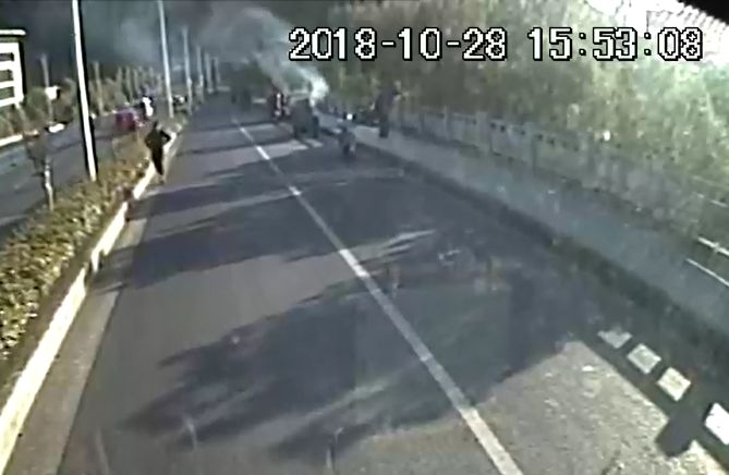 10月28日下午時(shí)許,大江東車隊(duì)733B路司機(jī)童志祥駕駛公交車行至新城隧道北口附近時(shí),突然發(fā)現(xiàn)一輛裝滿貨物的電動(dòng)三輪車發(fā)生自燃,濃煙滾滾,火光沖天。電動(dòng)車車主焦急萬分,站在路邊無助的求救。于是童師傅童師傅當(dāng)機(jī)立斷,馬上拉起手剎,將車停靠在安全區(qū)域,在向車內(nèi)乘客做好解釋安撫工作后,迅速拎起車上的滅火器沖下車。