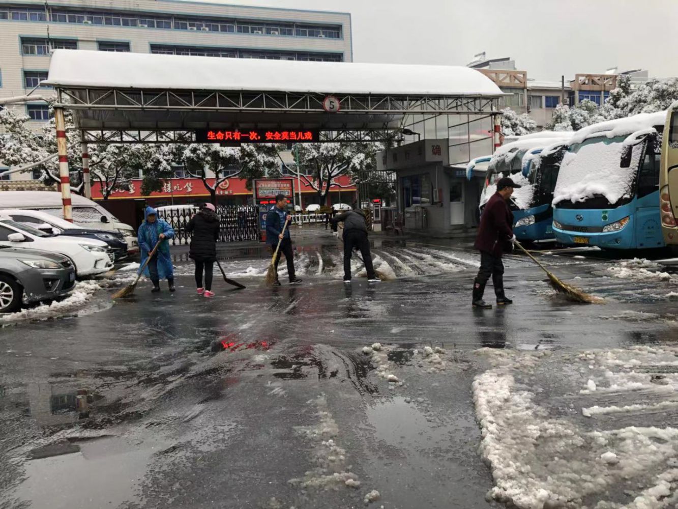 長運公司清除汽車總站主要通道積雪